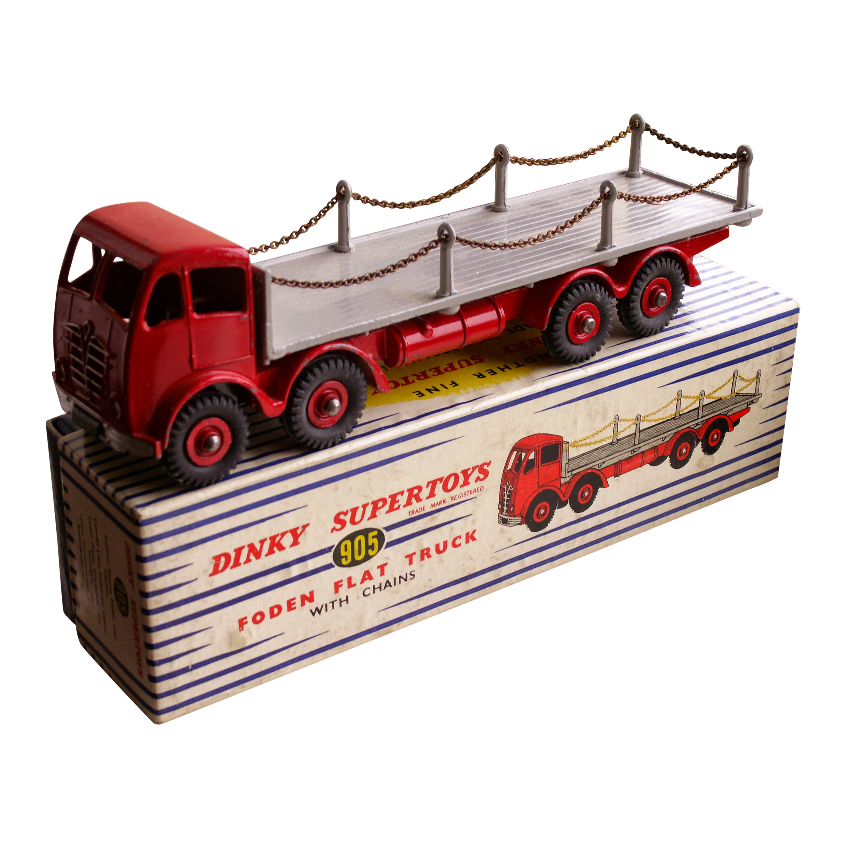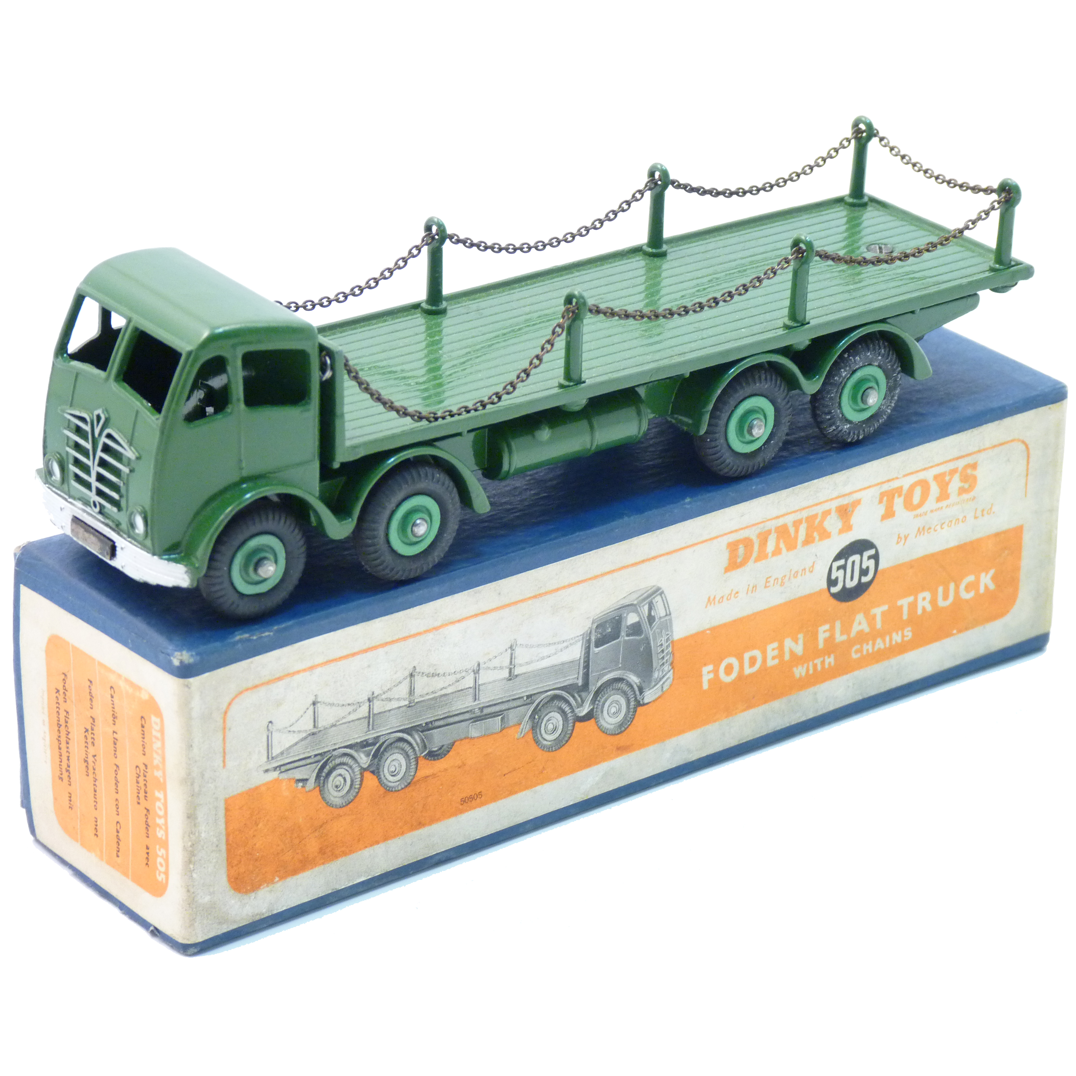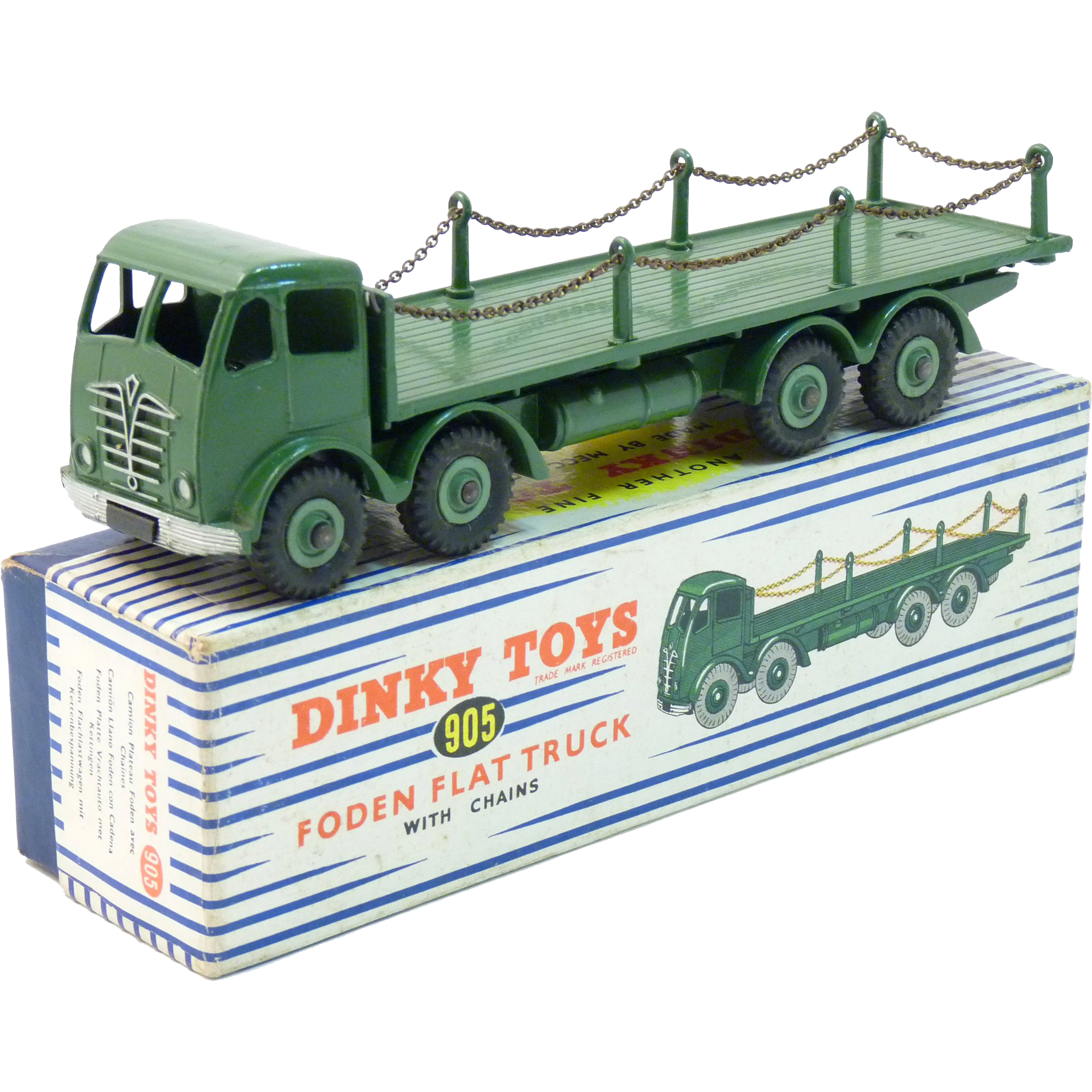 Dinky Foden Lorries come in many variants, which is why we have separated them from commercial vehicles. First variation: 1st type Fodens have a block grille and a paint flash down the side of the cab whereas 2nd types have angel wing grilles. 1st Types are "earlier" issues and usually more valuable. Second: The 500 series was made years earlier than 900 series; 500s are generally more valuable. Third: is colour - some colours are common and others were produced in small quantities. Remember that value can be exponential based on condition; perfect examples can be worth double a "near mint" model. Get personal advice about your colours and variants from an expert by requesting a valuation. Here are a few of our experts' favourite fodens, both common & rare - just click an image to expand: